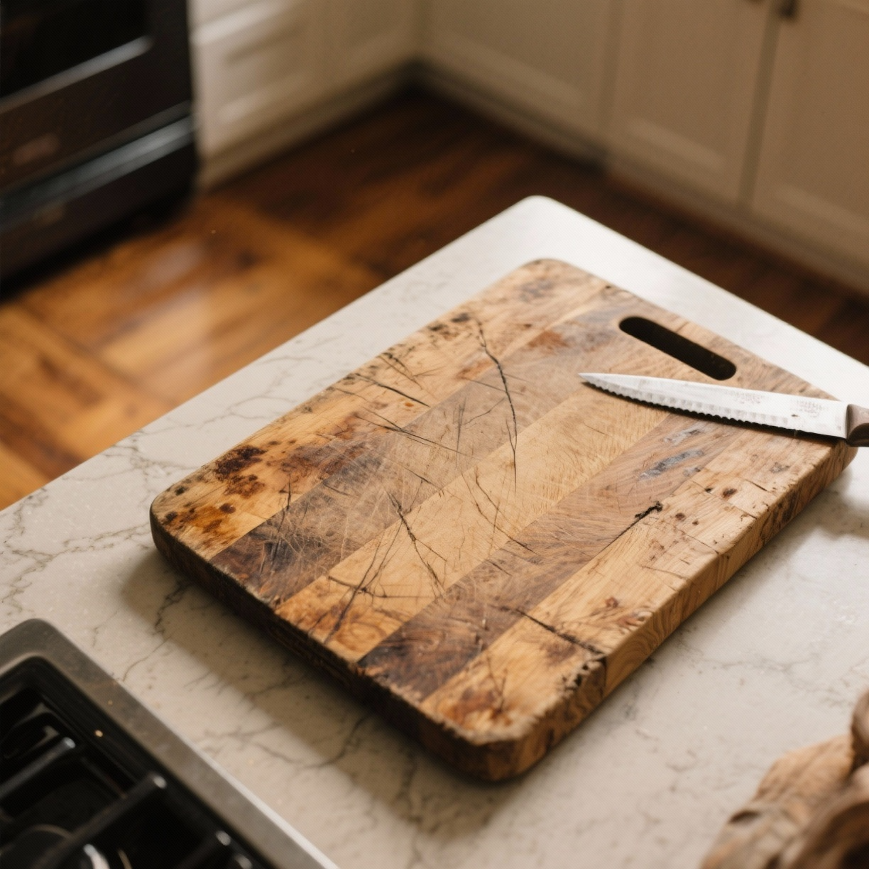Although lightweight and affordable, plastic boards develop deep knife grooves that trap food residue and harbor bacteria. They stain easily, absorb odors, and often warp after dishwashing, making them unsanitary and short-lived